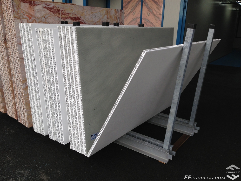 Examples of two FABYCOMB® lightweight marble panels of 3 sqm each one